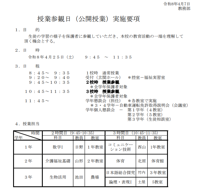 4月25日(土)に授業参観日を実施します!保護者の皆様はもちろん、地域の方々にも日頃の学習の様子をご覧いただきたいと思っています。お待ちしています!