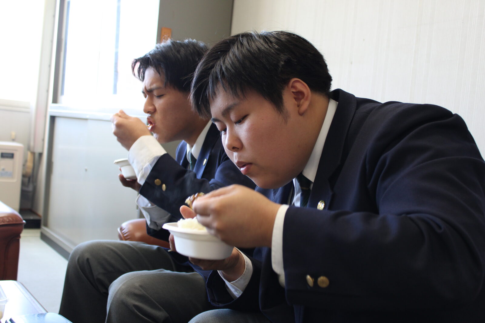 この日は、校長お手製のカレーライスで激励会でした。先日の収穫祭にてゲットした本校の美味しいタマネギをふんだんに使い、美味しいカレーができあがりました。寮のお弁当+カレーライス、気持ちの良い食べっぷり、完食ありがとう(笑)!
