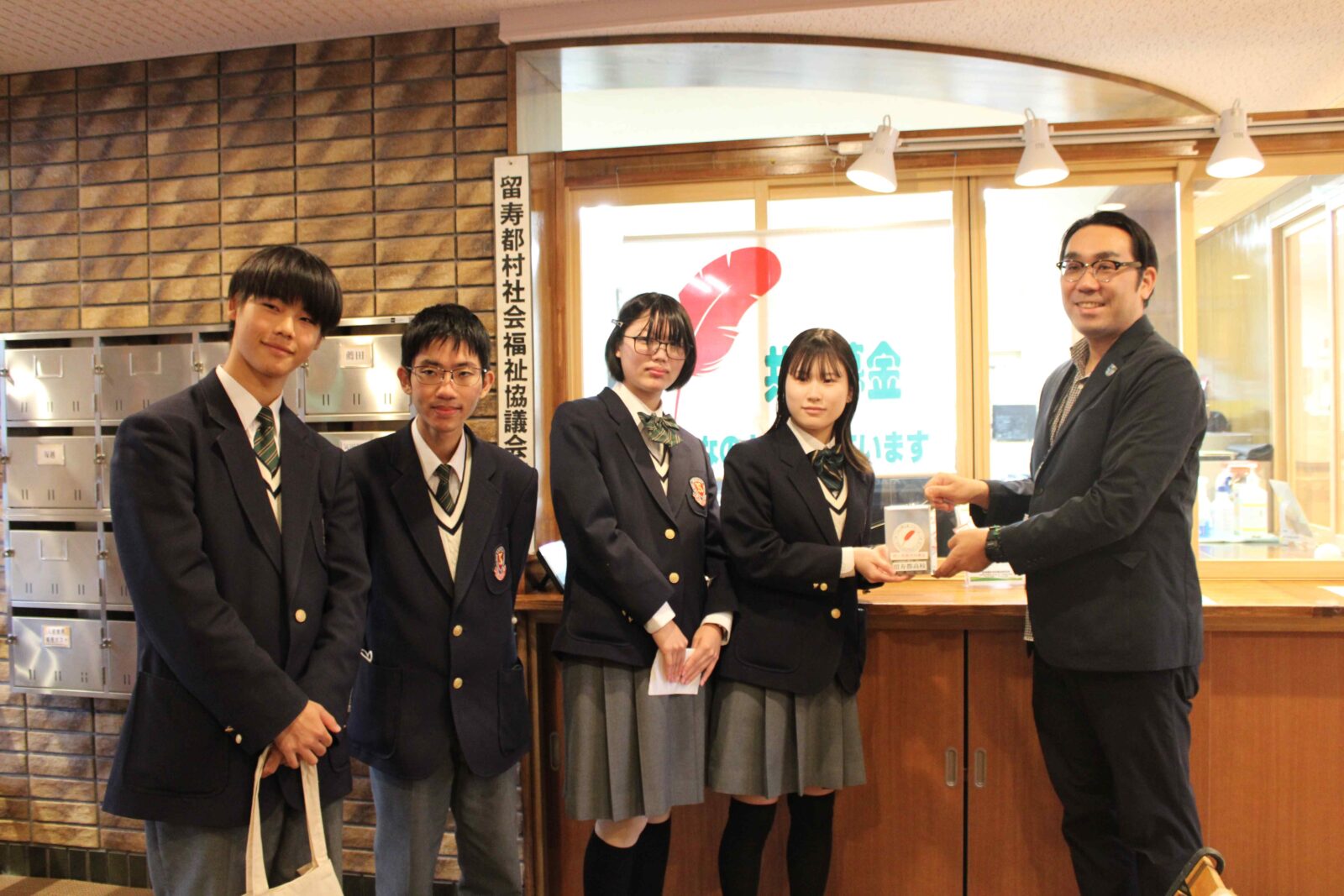 ボランティア委員会が主体となり、2日間本校で赤い羽根共同募金を行いました。 皆様からお預かりした5,016円の募金は生徒を代表してボランティア委員会が留寿都村社会福祉協議会を訪問しお届けしました。日本赤十字の共同募金を通じて、国内の福祉施設や世界各地で、紛争や自然災害、病気、食料危機などに苦しむ人々のために役立てられます。ご協力ありがとうございました。