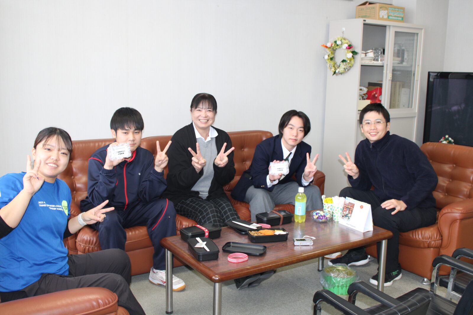12月24日(水)クリスマスイブの昼休み、学校祭でのビンゴ大会で「校長室ランチ券」をGETした、2年生の 打田 龍翔 (うちだ りゅうと)さんと1年生の 谷川 聖矢 (たにかわ せいや)さんのふたりが校長室に来てくれました。