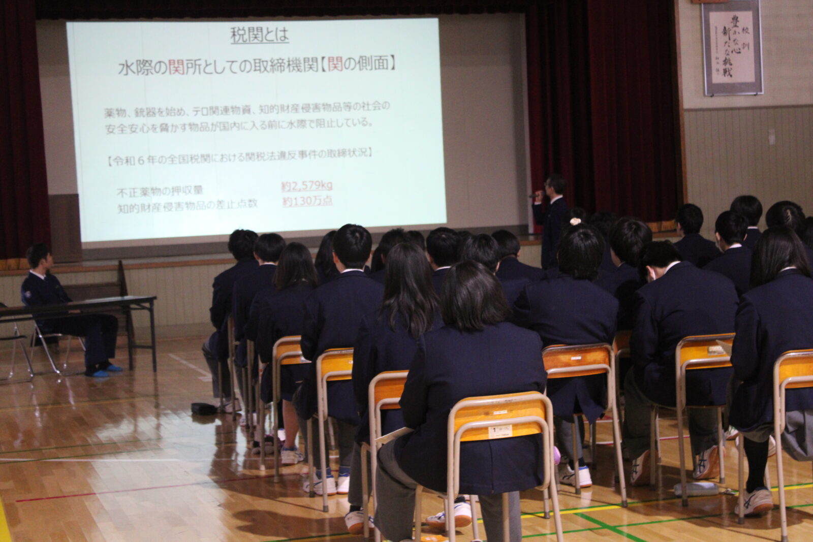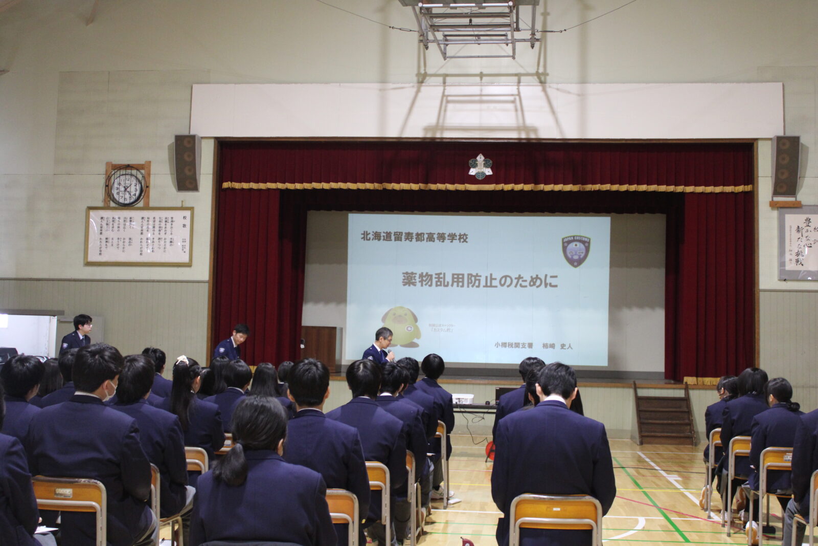 1月29日(木)、函館税関 小樽税関支署から講師3名の方々を招へいし、全校生徒を対象に薬物乱用防止教室を実施しました。