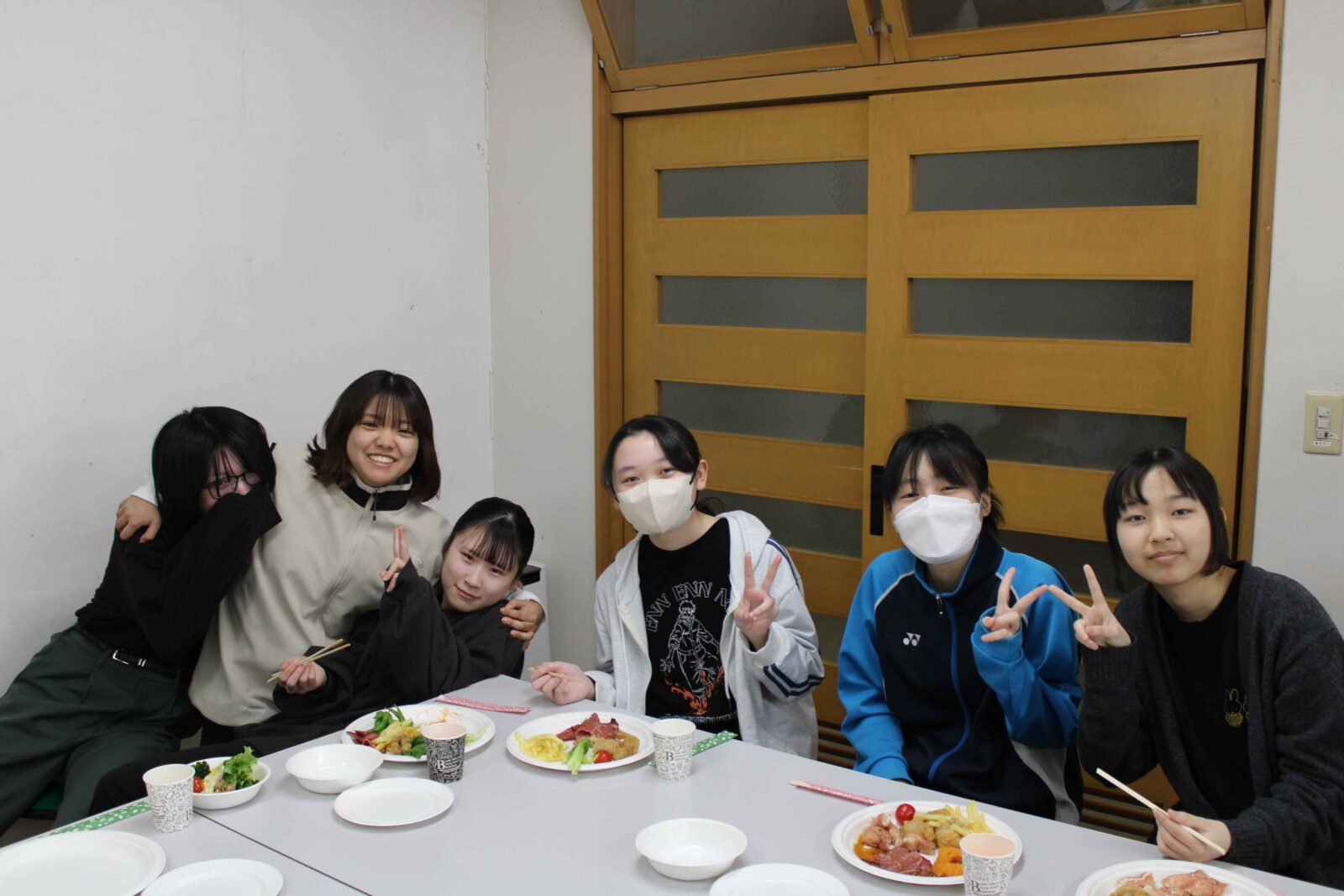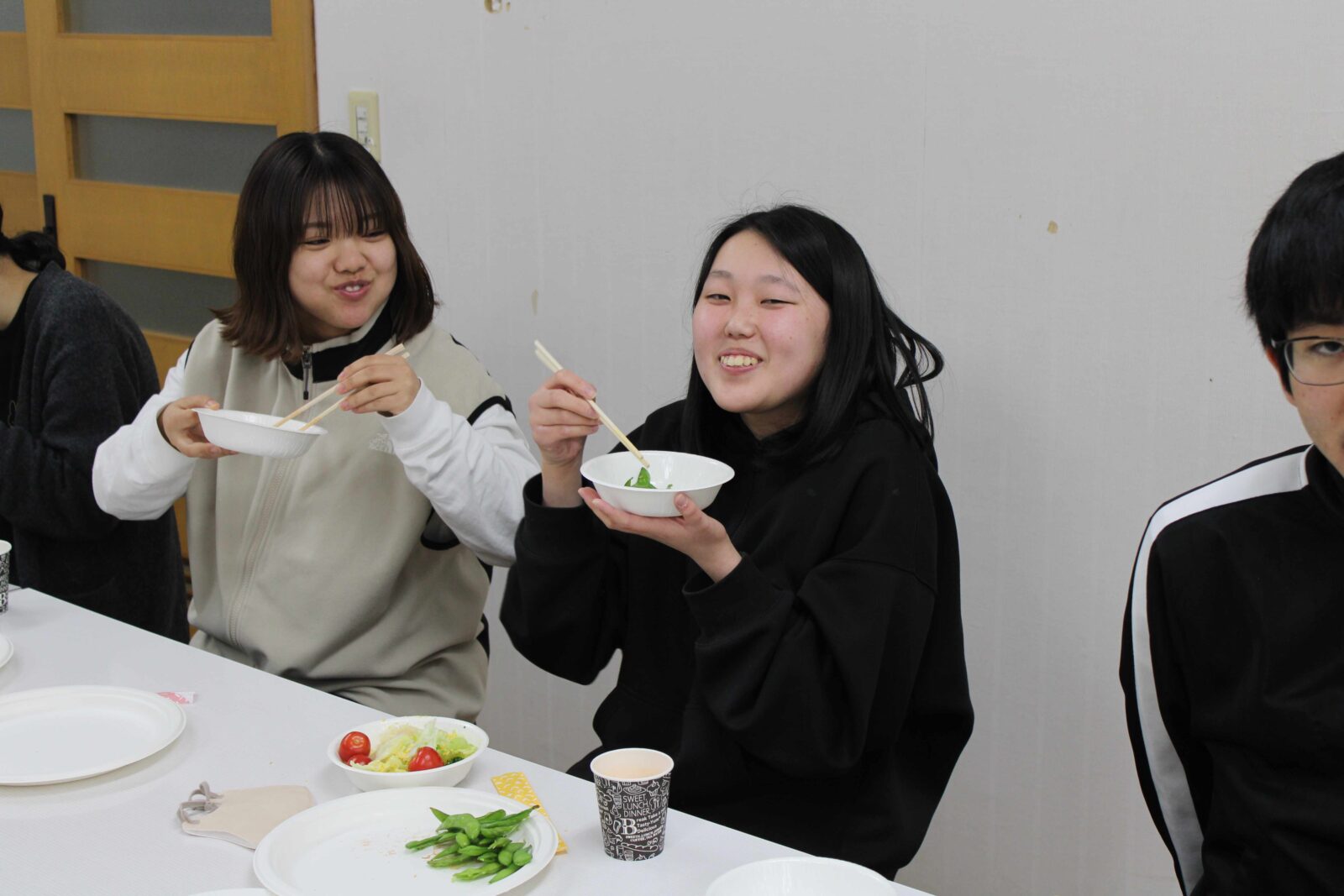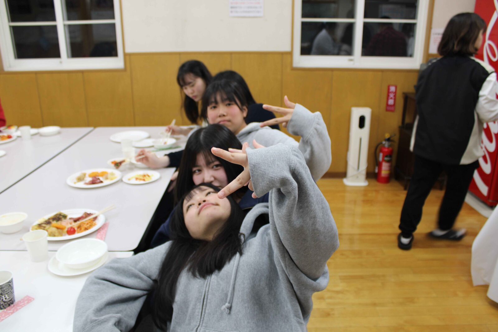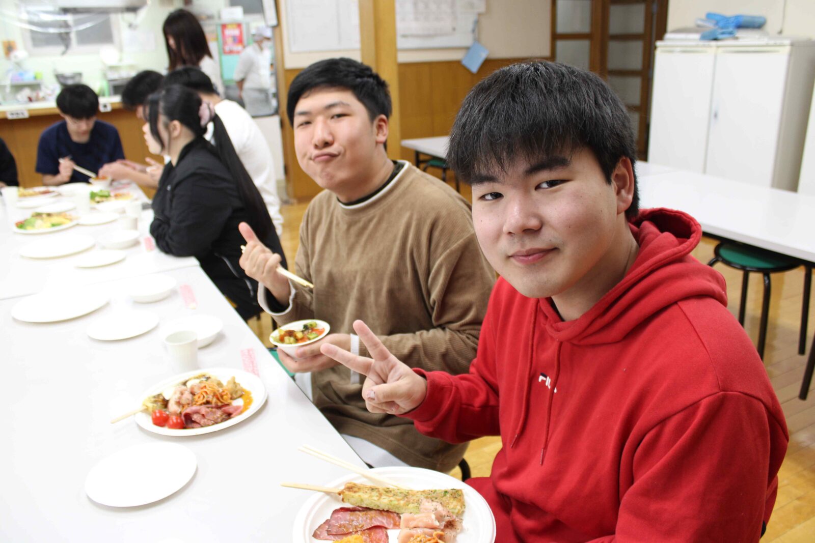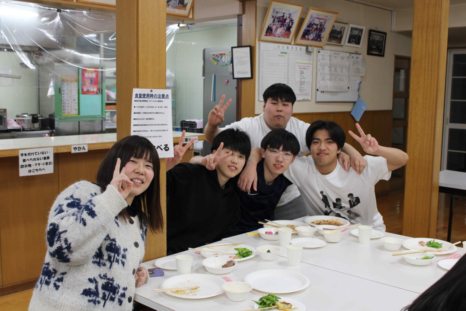 卒業式前日の最後の夕食は、生徒たちのリクエストメニューをバイキング形式で行いました。カルフォルニア丼やローストビーフなど、豪華なメニューがずらりと並び、卒業生は仲間や先生方とともに3年間または4年間の思い出を語り合いながら、楽しいひと時を過ごしました。