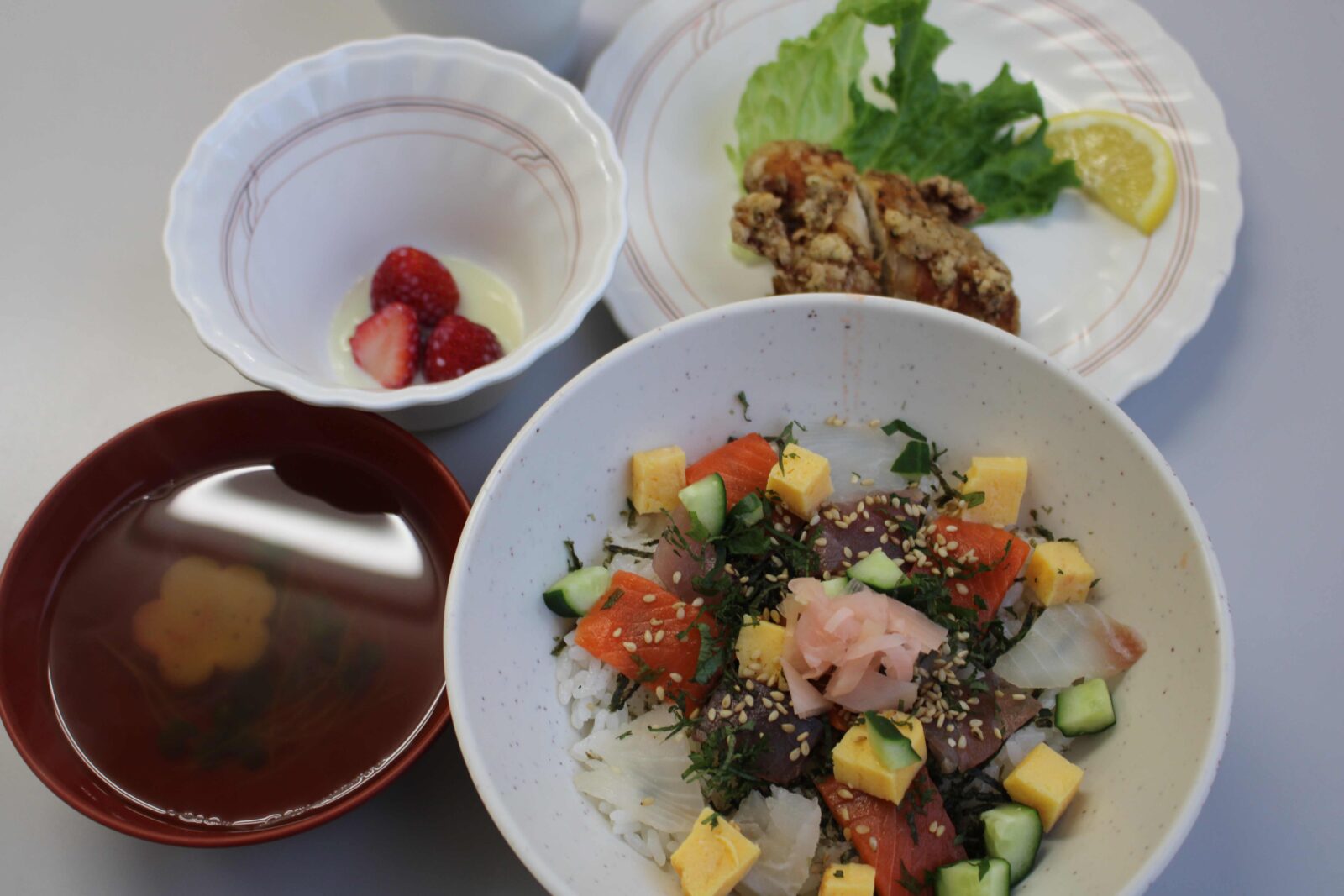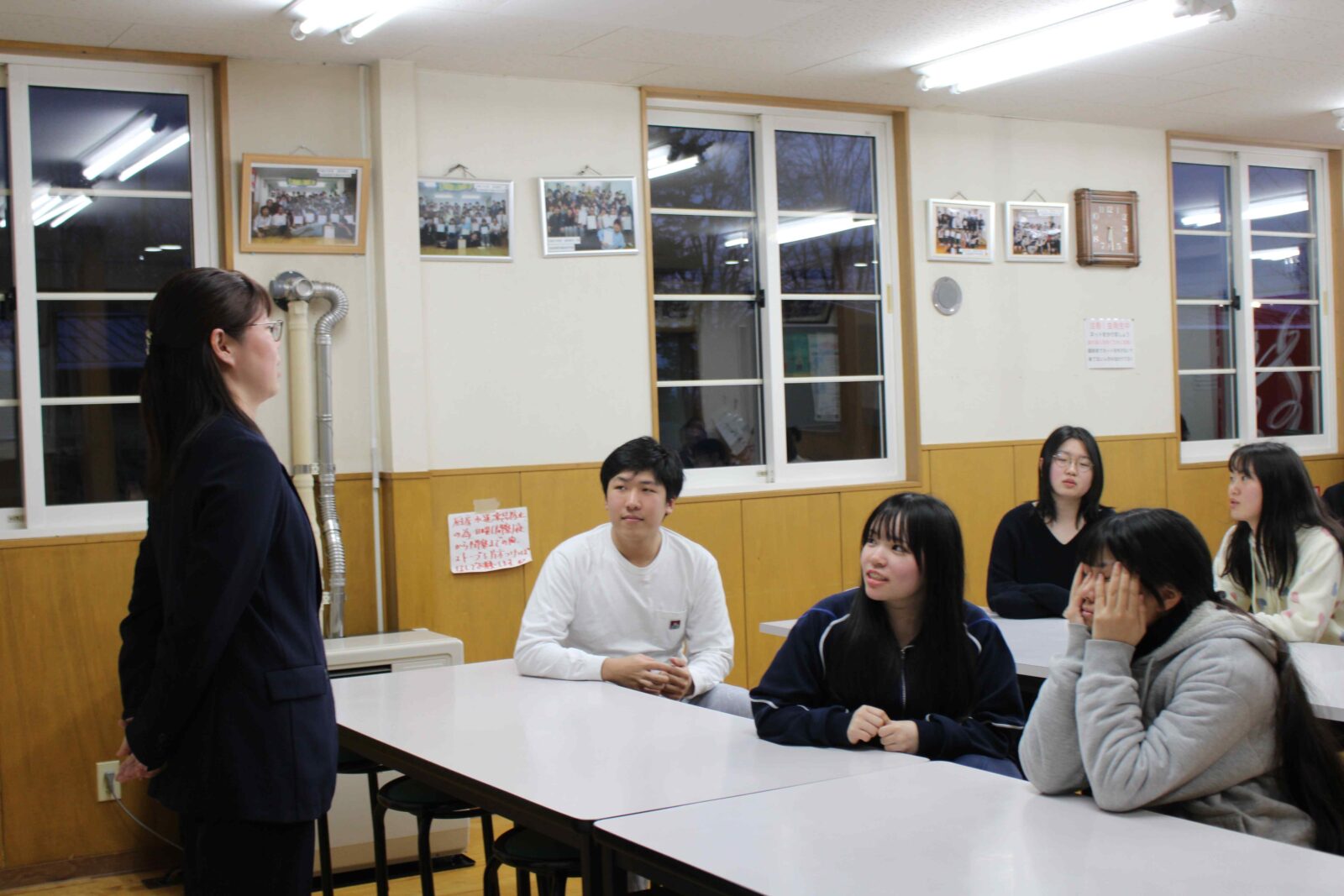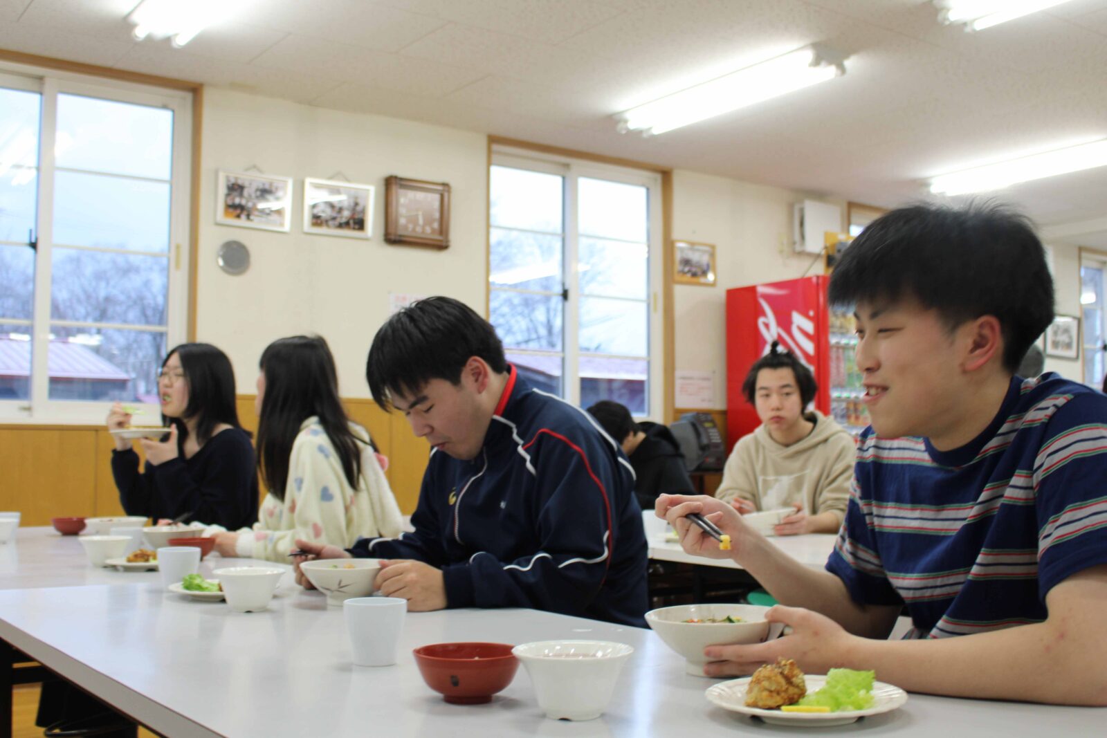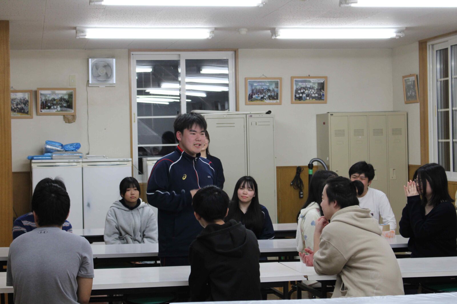 入学式の夜から寮生活がスタートしました! 初日はお祝いメニューの海鮮丼をいただき、先輩たちから寮での過ごし方や掃除のポイントなどを丁寧に教えてもらっていました。夜には先生方も交えての対面式が行われ、在寮生・新入生と先生方の自己紹介や交流を通して、寮生としての第一歩を踏み出しました。